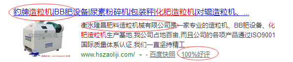 我們衡水隆昌肥料造粒機械有限公司在百度搜索的關鍵詞出現的網站是下圖: